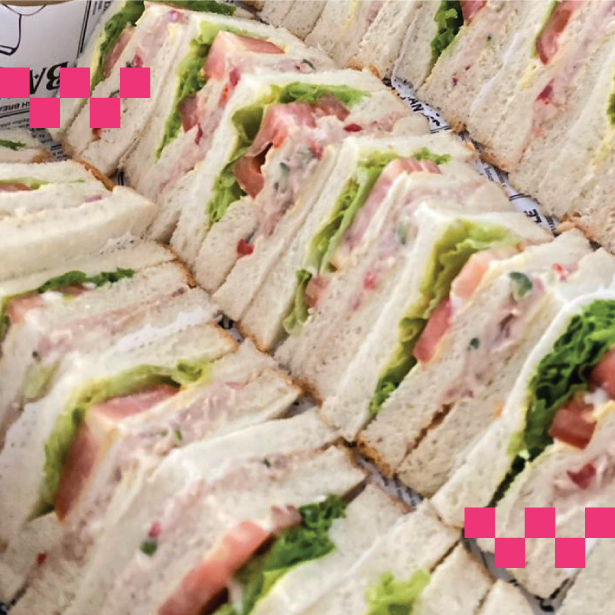 20 pcs Sandwich berintikan tuna yang di adun bersama mayonis dan bahan-bahan lain berserta salad dan tomato yang segar